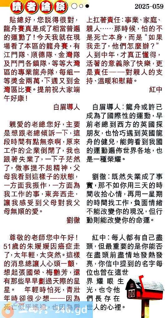 第零五九期讀者論談