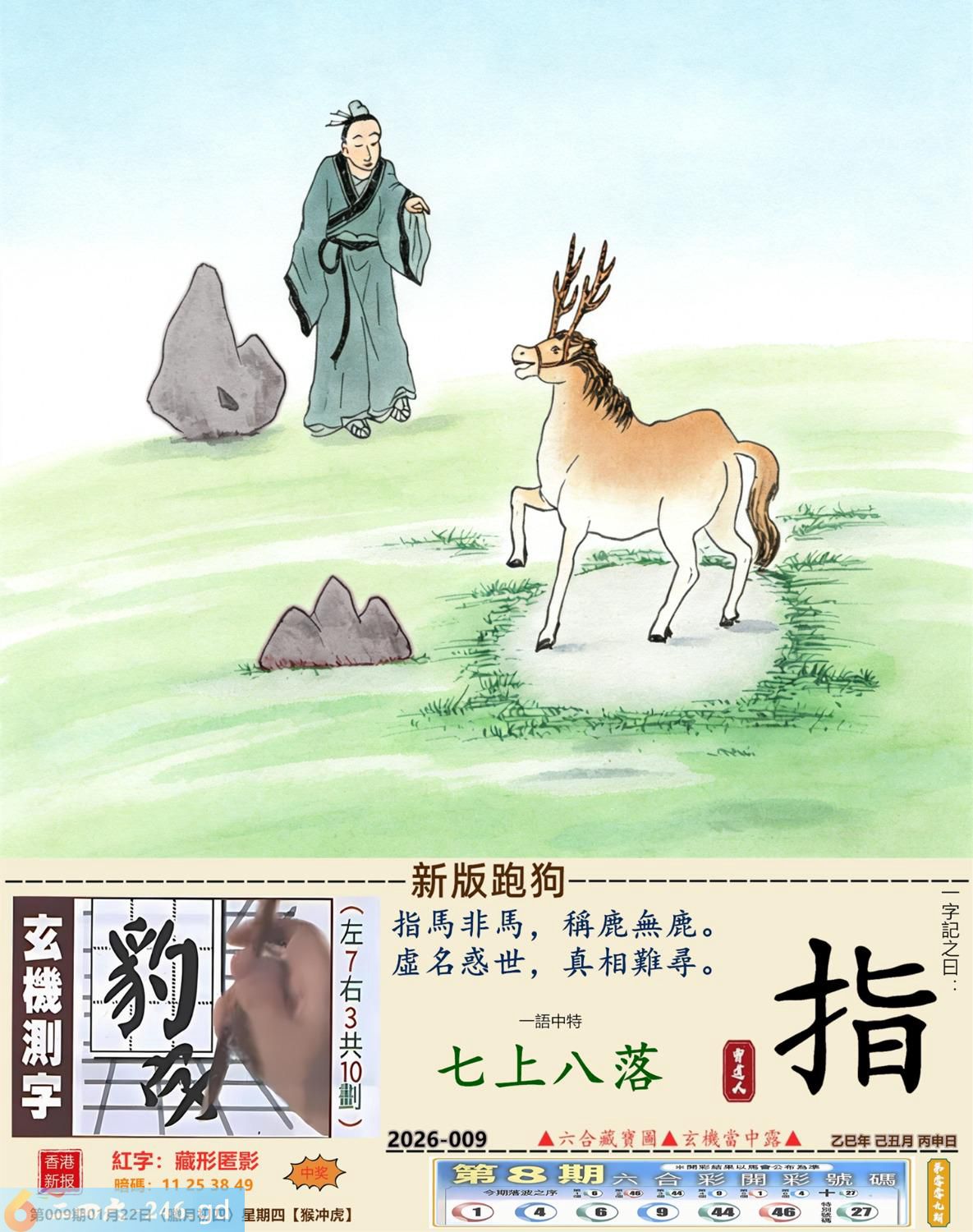 2026年1月22日009期虎(庚寅)(山下火) 009期:老版跑狗玄機一字記之曰:【心】 詩云:亂我心者不需要知我心者有多少 狂蜂浪蝶,不堪其擾,亂我心者不需要; 真正情人,蹤寂音杳,知我心者有多少。 玄機測字:《鎔》 密圖詩:榮華富貴享不盡 《記》:姑息養奸翻賊船 特碼大小單雙句:特碼不是凡夫采 今期必中:劉備 009期:特碼歇后語 禾苗怕蝼蛄-----一物降一物 009期正版四字梅花诗:焉知非福。 009期火车头:烧伤龙。诗:马死蛇伤,鸡猪伪装寻主生。 009期香港第一手欲钱料:二。 009期曾道人说:“三星?” 009期另版四字梅花诗:变出中间。 009期香港第一手欲钱料:欲钱看一力金毛遍全身。 009期曾道人说:“女人二十最喜欢得到什么东西”? 009期:二字經:超強 009期:八哥是特码 009期:智力金壤;凿壁偷光 009期:信箱紅字:【藏形匿影】 009期:【暗碼:11-25-38-49】 009期:一語中特:【七上八落】 發財玄機圖:聲威震天電閃雷動圖中明龍紅綠 009期:藏寳圖 新:吊屈谁知特怆神 老:小男供饵妇搓丝 禁:猴禁:4尾玄機字《醋》 2026年009期【生活幽默】版 〖你想過富裕的生活嗎〗 科恩是醫學院的學生,他想學心臟外科,又拿不定主意,于是去請教奥本教授。奥本教授問他:"小伙子,你想過富裕的生活嗎?" "當然!" "那你應當學牙科。""爲什呢?" "你想想,人的心臟祗有一個,而牙齒却有二三十颗。"