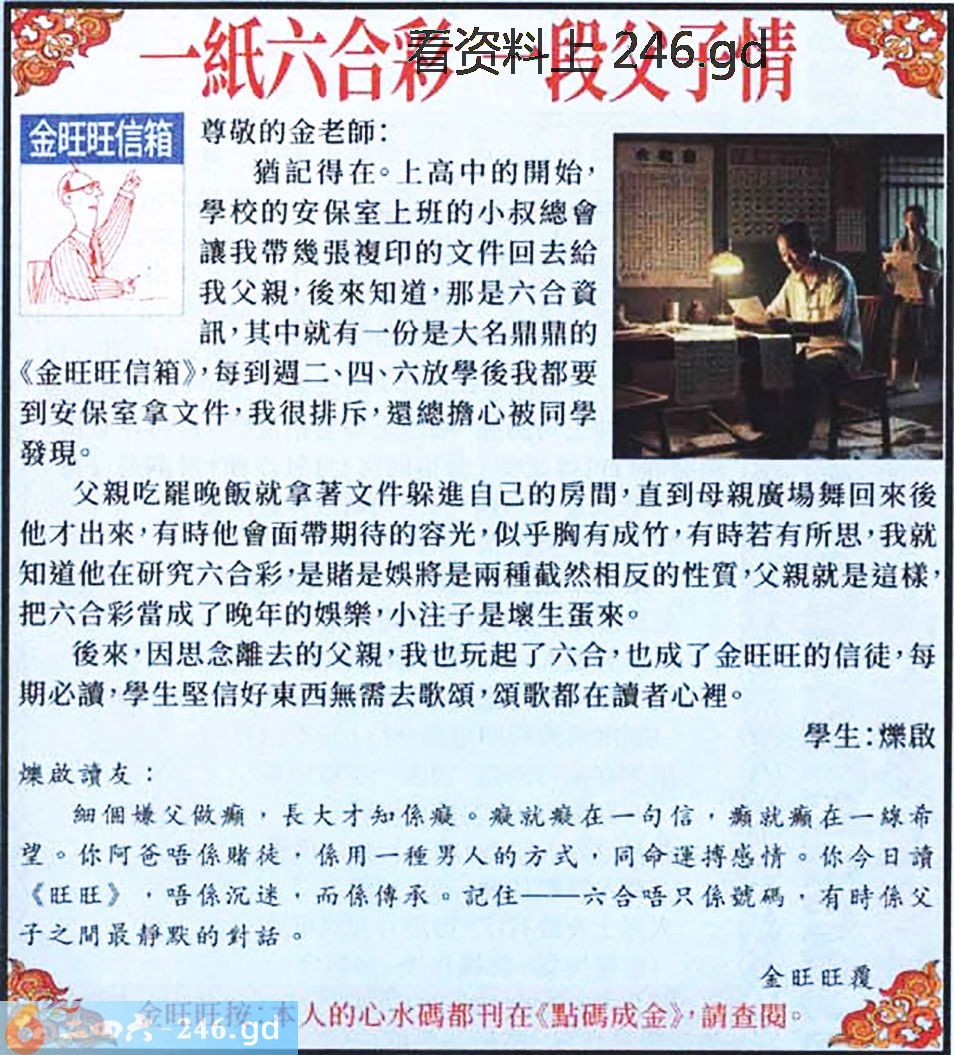 2025014期014期:金旺旺信箱彩民推荐→→《一紙六合彩 一段父子情》