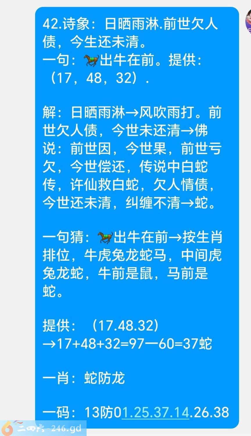 本帖最后由六合神龙于2025-4-1512:13编辑 42.诗象:日晒雨淋.前世欠人债,今生还未清。 一句: