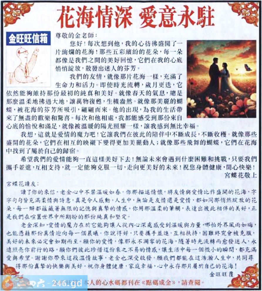 060期:金旺旺信箱彩民推荐→→《花海情深 愛意永駐》