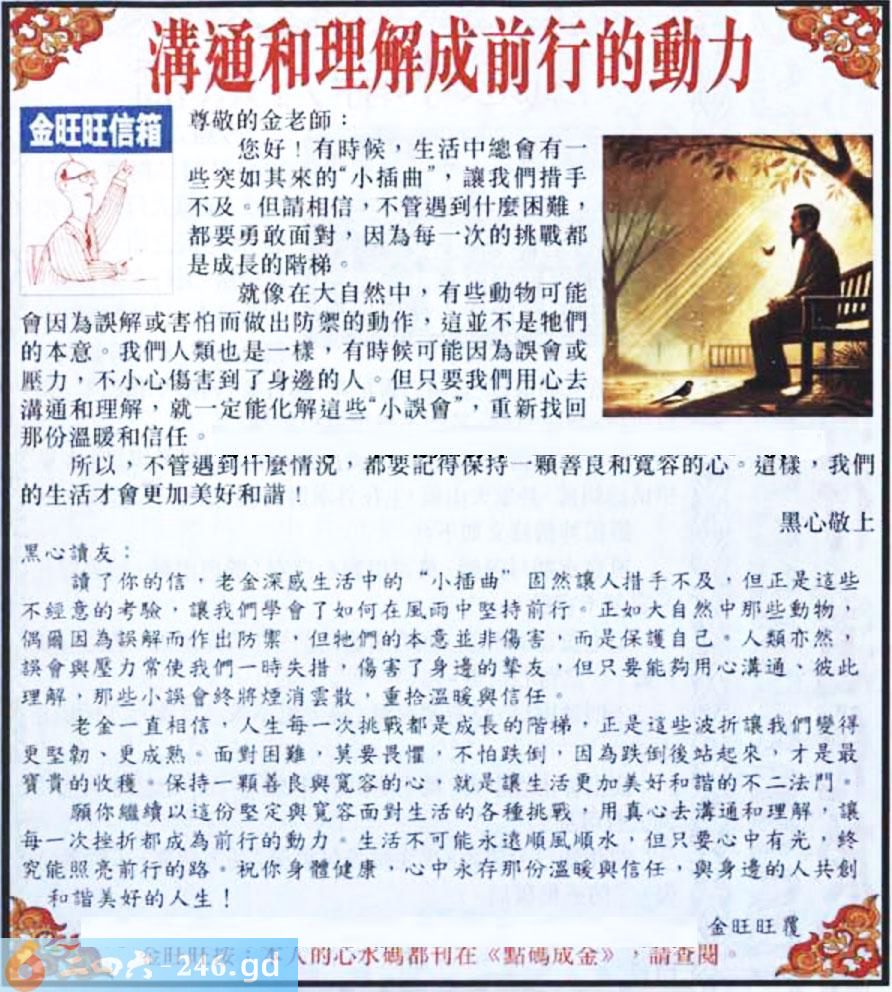 064期:金旺旺信箱彩民推荐→→《溝通和理解成前行的動力》
