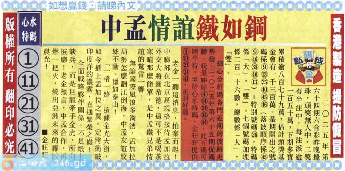 2025065期065期:金旺旺信箱彩民推荐→→《更新中》