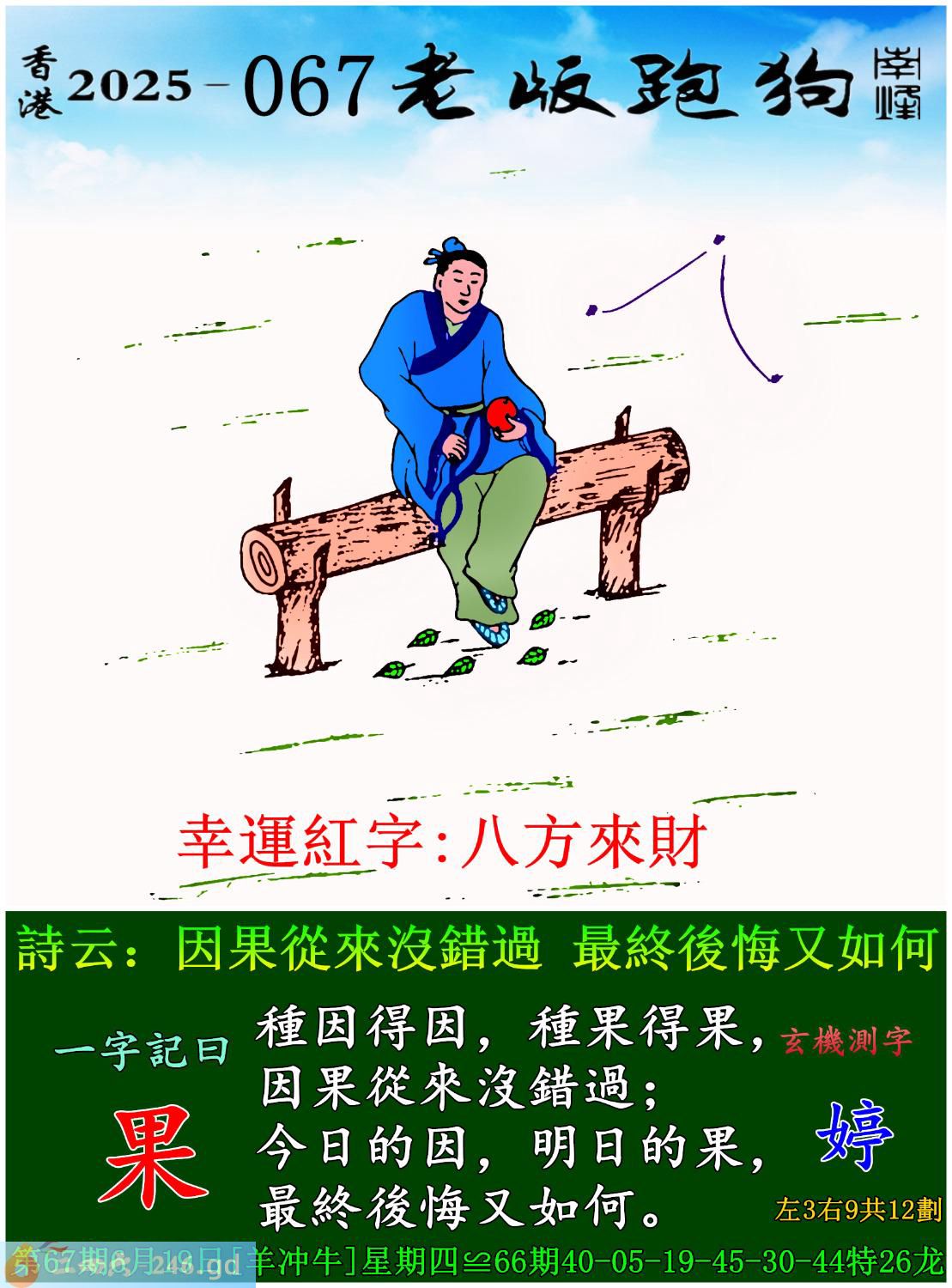 2025年6月19日067期牛(癸丑)(天上火) 067期:老版跑狗玄機一字記之曰:【果】 詩云:因果從來沒錯過最終後悔又如何 種因得因,種果得果,因果從來沒錯過; 今日的因,明日的果,最終後悔又如何。 玄機測字:《婷》 密圖詩:高唱一曲東方紅 《記》:賤人身上一身騷 特碼大小單雙句:單憑九字定財局 今期必中:司馬昭 067期:特碼歇后語 蛤蟆跳进粉笸箩-----充头面人物 067期正版四字梅花诗:眼高手低。 067期火车头:烧伤兔。诗:马死牛伤,二六花开好运来。 067期香港第一手欲钱料:火。 067期曾道人说:“日本人?” 067期另版四字梅花:狗年大吉。 067期香港第一手欲钱料:欲钱看珠海的边沿。 067期曾道人说:“为什么胖的女人喜欢减肥”? 067期:二字經:擔子 067期:立春是特码 067期:智力金壤:狐假虎威 067期:信箱紅字:【鹿觸心頭】 067期:【暗碼:02-16-26-39】 067期:一語中特:【一言九鼎】 發财玄機圖:一夫當關日行千里圖中明馬藍綠 067期:藏寳圖 新:书生著书贪日课 老:壹输壹失关下兵 禁:鸡禁:0尾玄機字《陈》 2025年067期【生活幽默】版 〖告知任務〗 焦大叔生病住院,醫院專家會診後斷定爲腎功能問题,確定焦大叔不能再過性生活了,醫生把這個告知任務交給了一新來的美女小護士。 小護士見到焦大叔很腼腆的説:焦叔叔,你不能和你夫人同房了。焦大叔説:我家衹有一間房呀,總不至于讓我住外面吧。小護士知道没把意思傳達到,急着説:焦叔叔,我是說你不能再和夫人同床了。焦大叔悦:我家衹有一張床呀,總不至于讓夫人睡地下吧。小護士急紅了臉:焦叔叔,你再也不能性交了!焦大叔生氣道:唉!你這小姑娘怎麽這樣呀!我祖宗八代都姓焦!爲什麽我就不能姓焦呀?