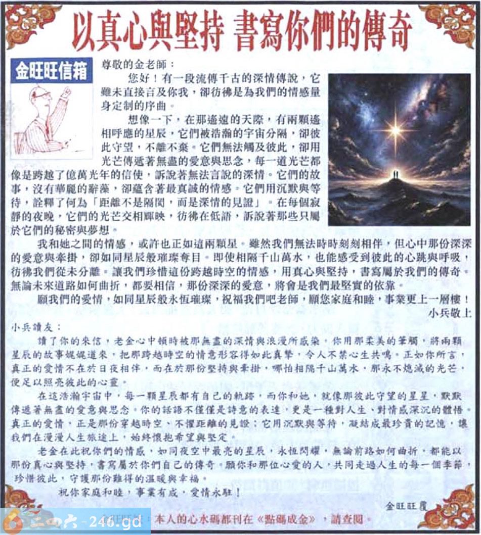 068期:金旺旺信箱彩民推荐→→《以真心與堅持 書寫你們的傳奇》