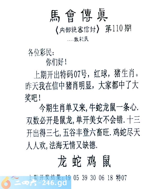 110期:首发推荐:≮馬會傳眞≯→(香港正版)