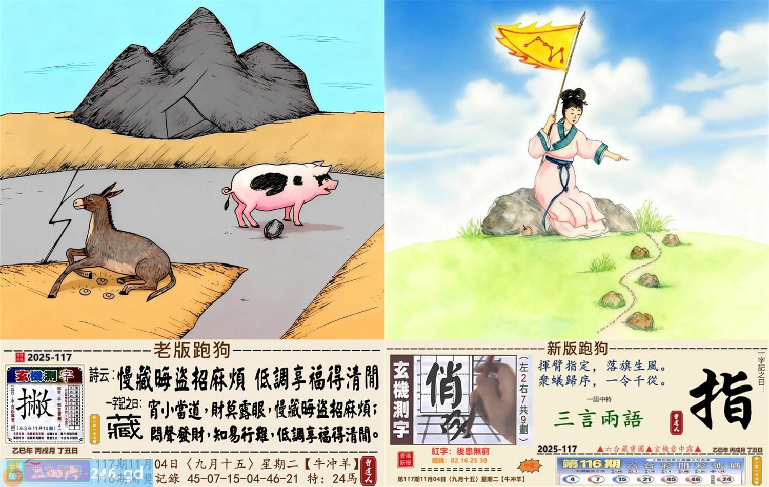 2025年11月4日117期羊(辛未)(涧下水) 117期:老版跑狗玄機一字記之曰:【藏】 詩云:慢藏晦盜招麻煩低調享福得清閒 宵小當道,財莫露眼,慢藏晦盜招麻煩; 悶聲發財,知易行難,低調享福得清閒。 玄機測字:《撇》 密圖詩:點將臺上閱三軍 《記》:三五必須多留意 特碼大小單雙句:折花送佳人 今期必中:劉備 117期:特碼歇后語 掂着猪下水过独木桥-----提心吊胆 117期正版四字梅花诗:云里雾里。 117期火车头:烧伤龙。诗:蛇死猪伤,马到边尾看其数。 117期香港第一手欲钱料:三年? 117期曾道人说:“绿?” 117期另版四字梅花诗:长江滚滚。 117期香港第一手欲钱料:欲钱寻长寿的秘密。 117期曾道人说:“为什么游目骋怀最开怀呢”? 117期:二字經:向中 117期:袋子是特码 117期:智力金壤:完璧归赵 117期:信箱紅字:【後患無窮】 117期:【暗碼:02-16-25-30】 117期:一語中特:【三言兩語】 發財玄機圖:緊密相連呆若木頭圖中明雞紅藍 117期:藏寳圖 新:所得平时为郡乐 老:东南永作金天柱 禁:猪禁:2尾玄机字《湖》 2025年117期【生活幽默】版 〖你是約翰〗 約翰在機場侯機,閑來無聊站到一臺體重機上,熒屏上馬上出現“你是約翰,體重87公斤,飛往紐約。”的字樣。約翰十分驚奇,他十分鐘以後戴着墨鏡又站到這臺機器上,熒屏上馬上又顯出“你是約翰,體重87公斤,飛往紐約。” 約翰更加感到神奇了,他跑進洗手間刮掉胡子,换掉衣服又來到這機器前,焚屏上馬上顯出“你仍是約翰,你的體重仍是87公斤,你的飛機已于10分鐘前飛走了。”