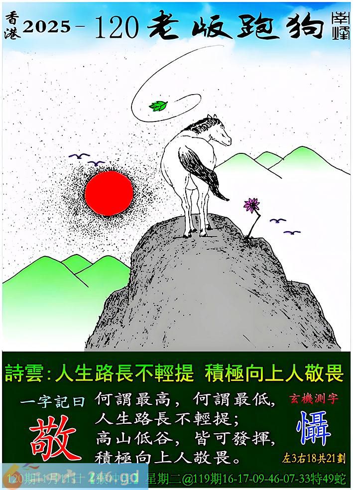 本帖最后由庞太师于2025-11-1021:05编辑 120期老版跑狗一字记之曰:【敬】 詩雲:人生路長不經提,積極向上人敬畏。 人生路长不经提: 不经提“释命薄的人。“提”是随时都有可能被杀的,你的人生取决于主人的一句话,猪壮既被杀 积极向上人敬畏: 积极向上代表每次都有它的参与,正如过节时,每次“供神”祭祖都会用到“猪”来祭拜,猪代表着醒目精神顺利的蕴意,有句老话叫”猪上神台万人敬! 六信: 【1】首先改变心态,尝试从负面情绪中抽取,尝试换个角度来看事物。 【2】紫饰店内有五帝七星符。 【3】其實不貪心,只要有個穩定的工作、工作輕鬆、不要壓力太大、薪水夠用、平常可以做自己的事情,一年能出國旅遊一次,這樣就夠了。 一肖【猪】31