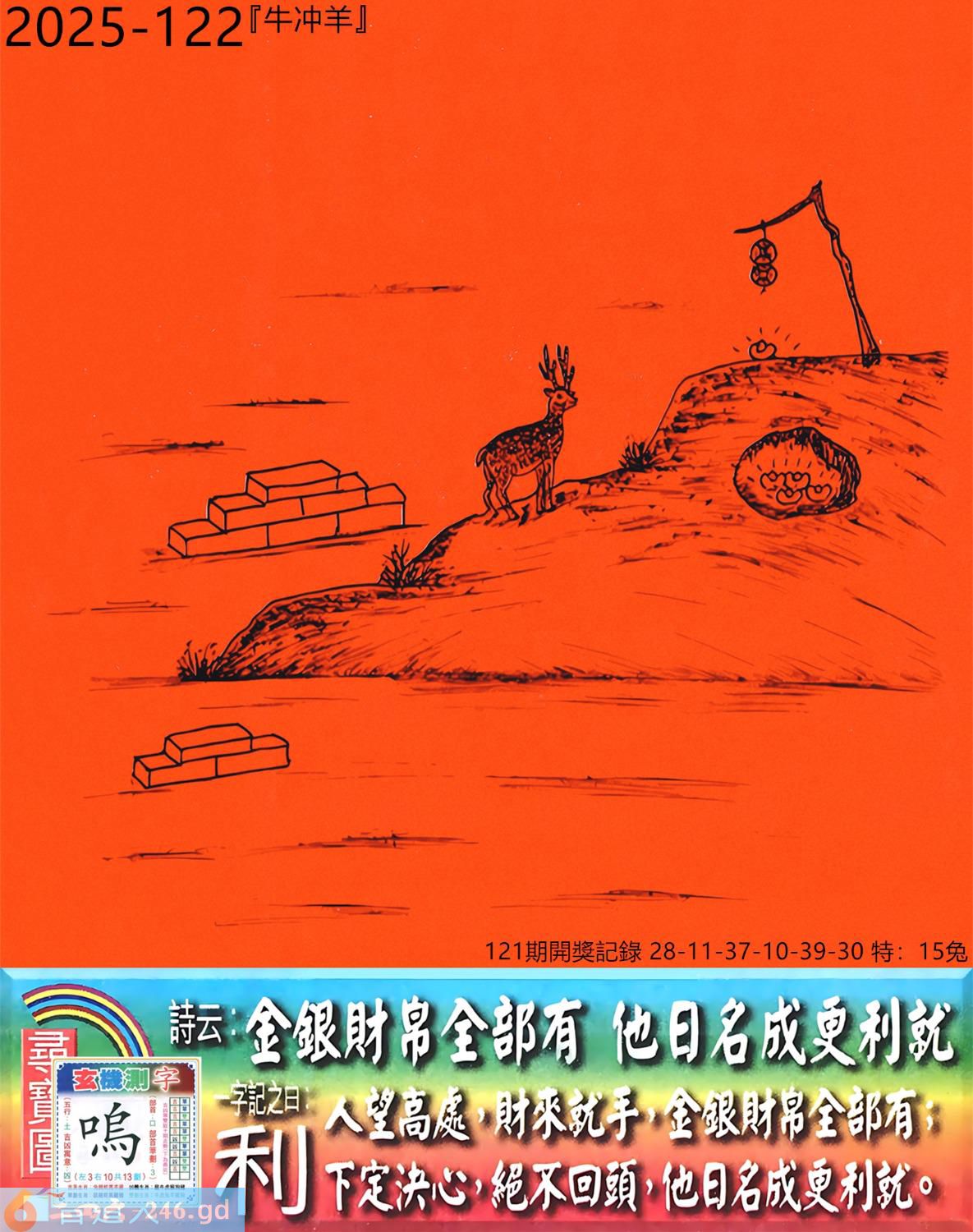 2025年11月16日122期羊(癸未)(霹雷火) 122期:老版跑狗玄機一字記之曰:【利】 詩云:金銀財帛全部有他日名成更利就 人望高處,財來就手,金銀財帛全部有; 下定決心,絕不回頭,他日名成更利就。 玄機測字:《鳴》 密圖詩:一口咬定八當寶 《記》:三思而行四方面 特碼大小單雙句:人前人后各一套 今期必中:孫策 122期:特碼歇后語 当了衣裳打酒喝-----顾嘴不顾身 122期正版四字梅花诗:十全十美。 122期火车头:烧伤狗。诗:羊死鸡伤,开过一门又一门。 122期香港第一手欲钱料:村夫俗子。 122期曾道人说:“王老吉?” 122期另版四字梅花诗:盖世豪情。 122期香港第一手欲钱料:欲钱看西游记第三回。 122期曾道人说:“男人三十喝酒时喜欢做什么事”? 122期:二字經:三十 122期:平果是特码 122期:智力金壤:勇往直前 122期:信箱紅字:【吹灰之力】 122期:【暗碼:14-21-28-41】 122期:一語中特:【三言兩語】 發財玄機圖:四蹄翻腾精神健旺圖中明馬紅綠 122期:藏寳圖 新:割鲜籍草酒淋漓 老:日暮沙场飞作灰 禁:猴禁:0尾玄機字《将》 2025年122期【生活幽默】版 〖表現很好〗 有一個精神病患者救了一個落水者。 院長非常高興,對這個精神病患者說:“這次你救了一個落水的人,表現很好,但不幸的是他不知道什麽是原因又上吊自殺了。” 精神病很得意的說:“是我把他挂起來要晾幹的!”