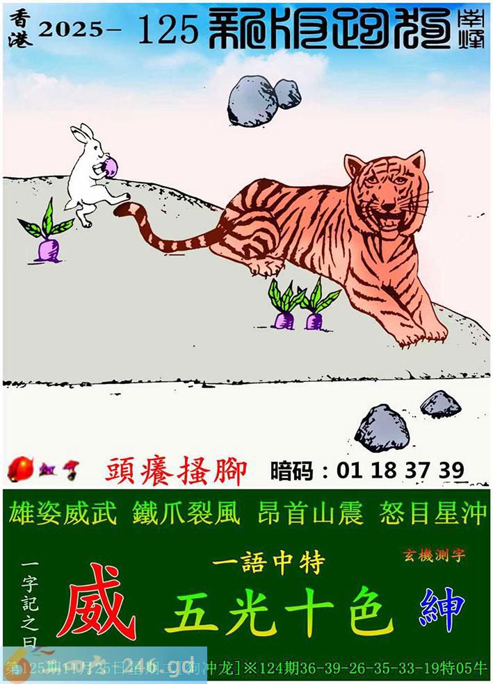 贪乃天性,无需违背,黑白当中总有灰。归纳老狗诗文就两点:1、特肖不贪;2、特肖眼里这个世界非黑即白,只有黑白。不贪的生肖大概为:牛兔龙马羊;龙为虚拟、或者精神图腾,这里具体地叙事则龙的概率很小。故本期大围【牛兔马羊】。只有黑白两种颜色,或许是巧合,亦可能为老狗有意为之,【兔马】从波色上也正好只有两种颜色,个人觉得【兔马】可以多考虑。结合新狗字【威】以及新狗图看,【威】无疑为威武、霸气之意,理论上应当对男肖着重考虑。如以上思路正确,本期特肖【马】应该问题不大。红字【头痒搔脚】,选一码最下面的号码【48】。