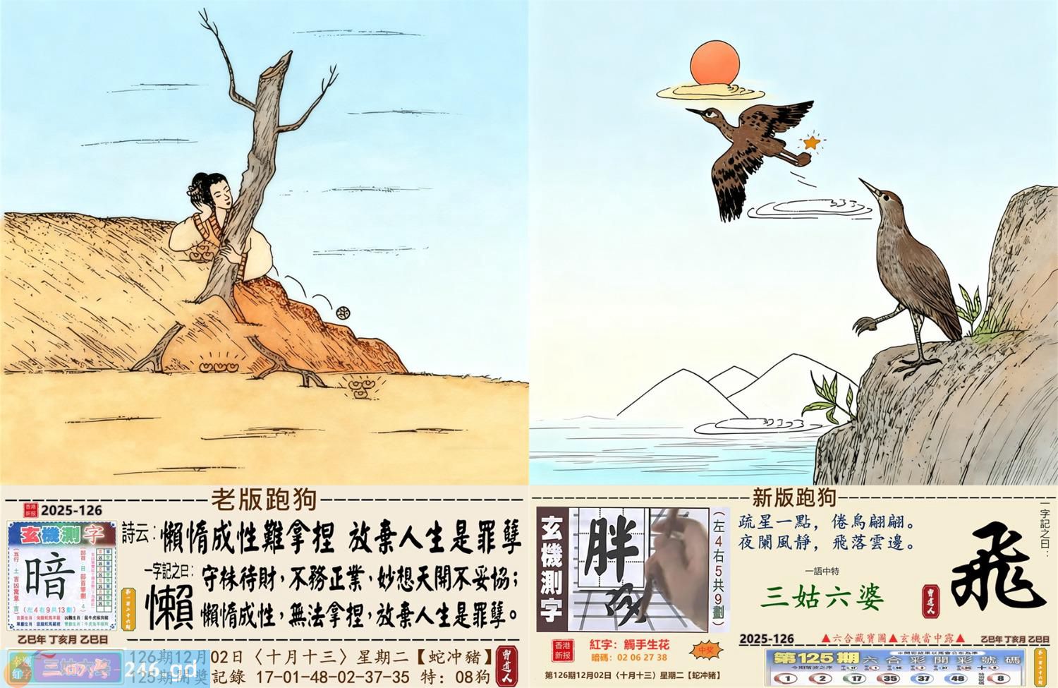 2025年11月29日126期侯(丙申)(金箔金) 126期:老版跑狗玄機一字記之曰:【懶】 詩云:懶惰成性難拿捏放棄人生是罪孽 守株待財,不務正業,妙想天開不妥協; 懶惰成性,無法拿捏,放棄人生是罪孽。 玄機測字:《暗》 密圖詩:十次買一有時中 《記》:一日文章拜布衣 特碼大小單雙句:方圓十里無客棧 今期必中:張飛 126期:特碼歇后語 掉进水里的鞭炮-----给谁都不要 126期正版四字梅花诗:龙争虎斗。 126期火车头:烧伤狗。诗:猴死龙伤,无穷二四过一边。 126期香港第一手欲钱料:大名鼎鼎? 126期曾道人说:“厨娘?” 126期另版四字梅花诗:七十二变。 126期香港第一手欲钱料:欲钱找世界最高楼。 126期曾道人说:“为什么现代的人喜欢赌博”? 126期:二字經:三九 126期:高丽参是特码 126期:智力金壤:烟雨蒙蒙 126期:信箱紅字:【觸手生花】 126期:【暗碼:02062738】 126期:一語中特:【三姑六婆】 發財玄機圖:挖空心思絞盡腦汁 圖中明狗紅藍 126期:藏寳圖 新:造化无心本不知 老:流到前溪无半语 禁:兔禁:8尾玄机字《离》 2025年126期【生活幽默】版 〖好友〗 古時候,有一個和尚跟一個屠夫是好友。 和尚早上要起來念經,而屠夫要起來殺猪。爲了不耽誤各自工作,便約定早上互相叫對方起床。 多年後和尚與屠夫去世了。屠夫去了天堂,和尚却下了地獄。因爲屠夫天天做善事,叫和尚起來念經;而和尚天天叫屠夫起來殺生。