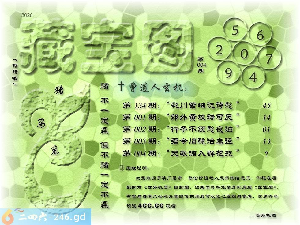 004期藏寶圖 新:天教谪入群花苑 老:乌蒙磅礴走泥丸 禁:狗禁:1尾玄機字:《收》