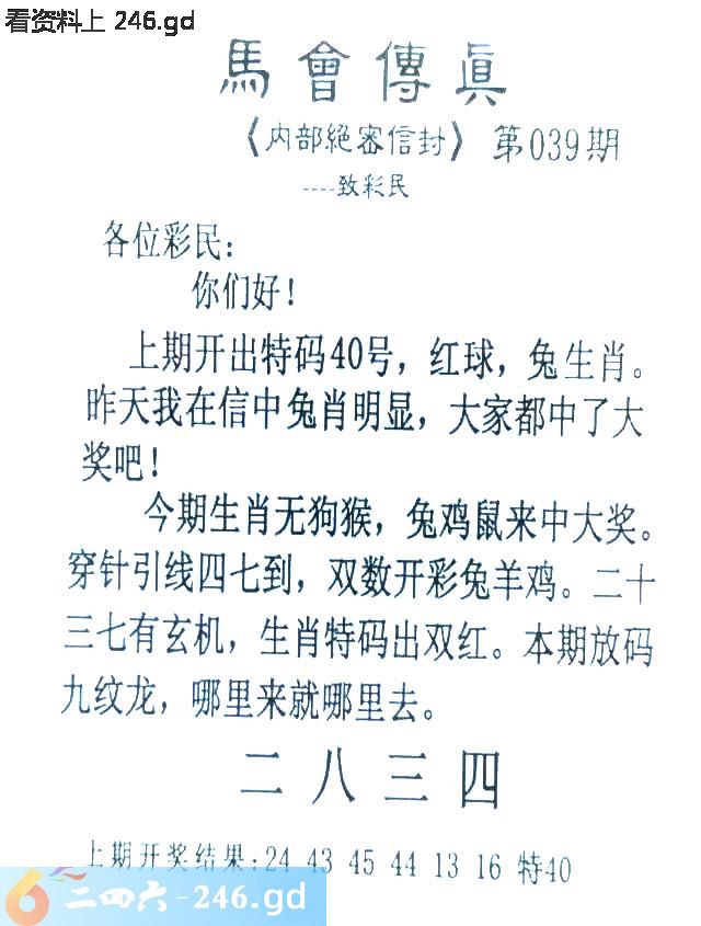 039期:首发推荐:≮馬會傳眞≯→(香港正版)